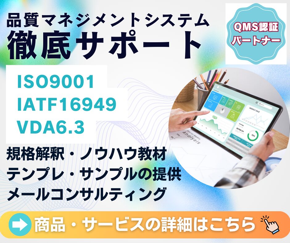 👉 姉妹サイト「QMS認証パートナー」では、実務で使える有料のサポートサービスを提供!「すぐに使える資料が欲しい」「専門家のサポートが必要」な方に最適!